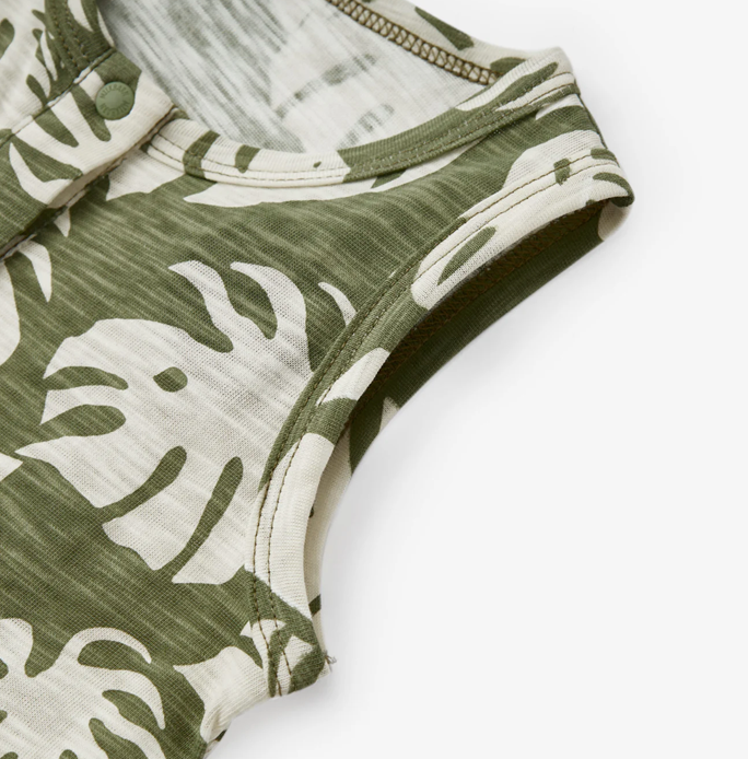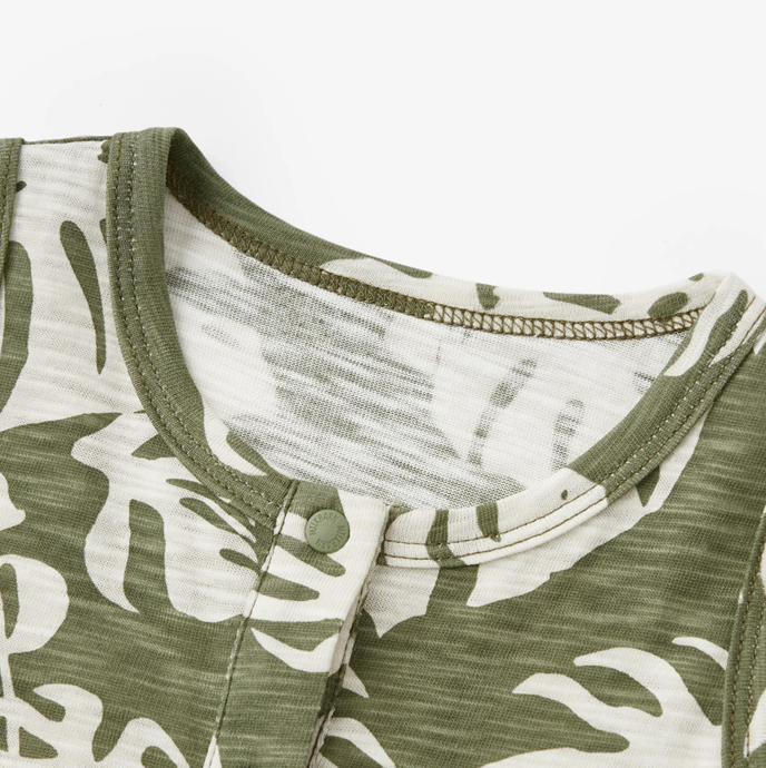 Our Slub Cotton Sleeveless Jumper in the Island Leaf Silhouette print combines carefree style and comfort. With its relaxed fit and sleeveless design, this jumper allows for easy movement, whether your little one is at play or simply lounging. Complete the look by adding any Milkbarn accessory.