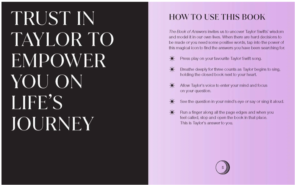 The Book of Answers According to Taylor invites us to uncover Taylor Swift’s wisdom and model it in our own lives. When there are hard decisions to be made or you need some positivite words, tap into the power of this magical woman to find the answers you have been searching for.