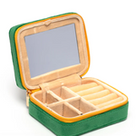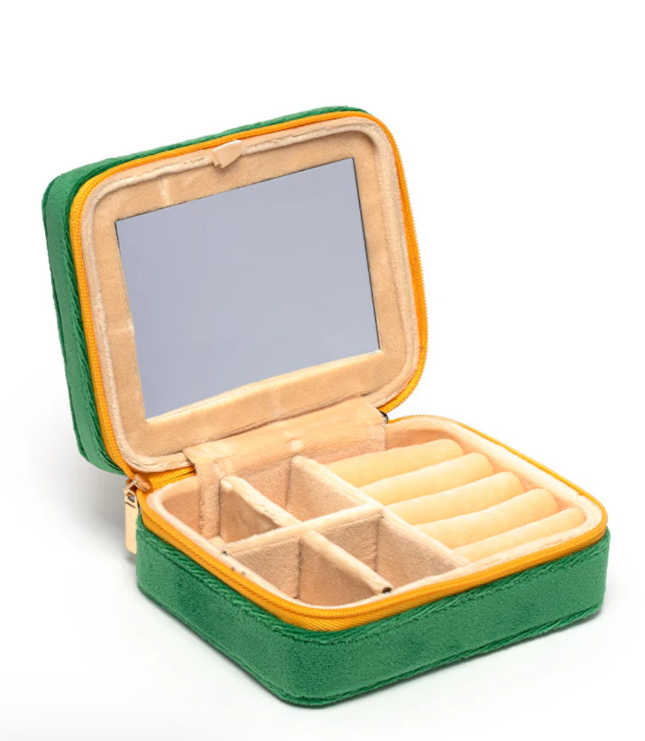 The perfect travel companion, Jewelry Zip Case, offers many hidden slots and compartments. Great for all jewelry- Rings, Earrings, Necklaces and bracelets. Made from super soft velvet and has a built-in mirror.