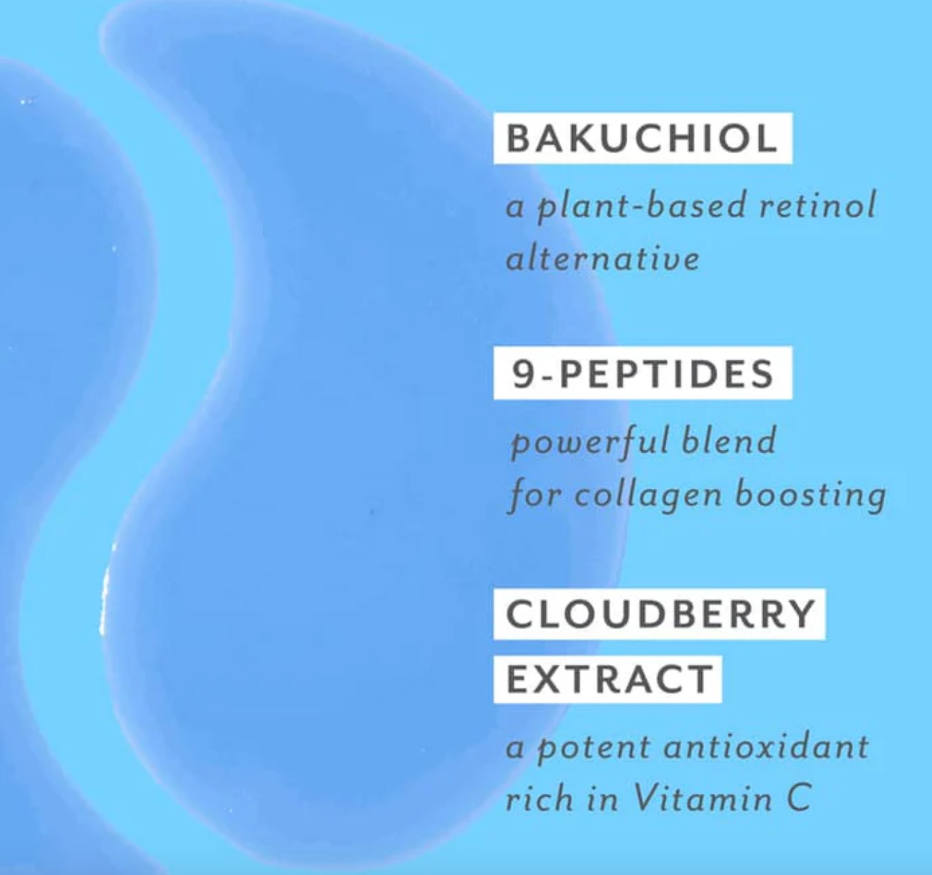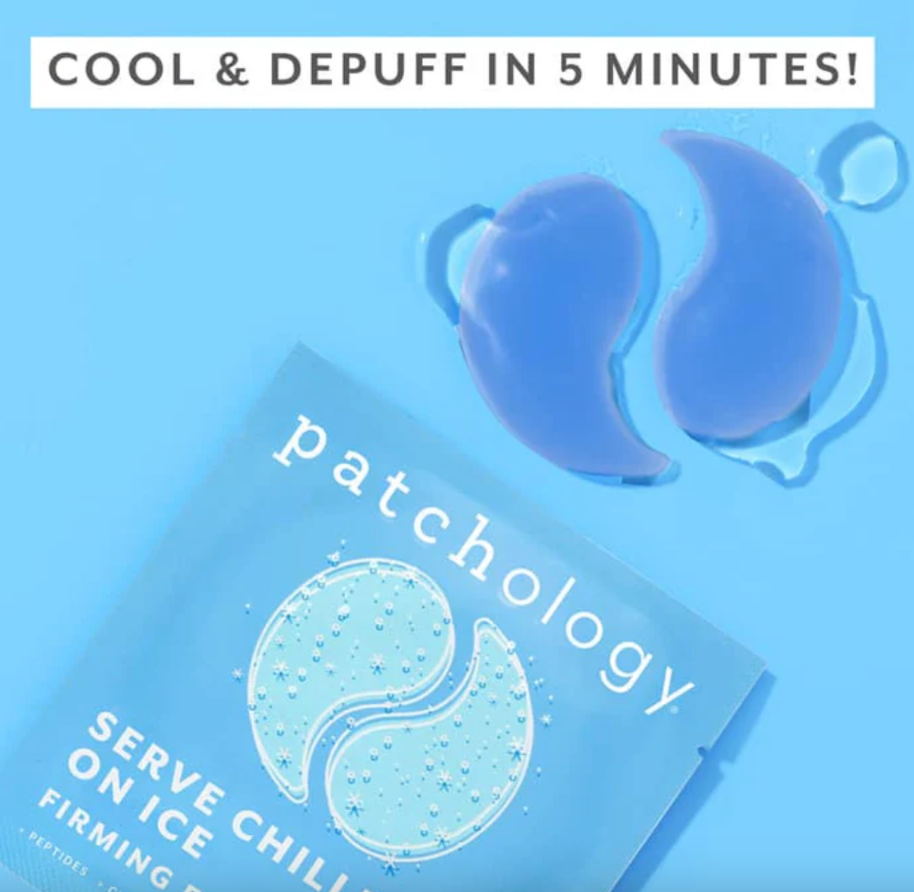Cool down, firm up. Patchology Serve Chilled™ On Ice Hydrogel Eye Patches deliver an icy jolt to tired, puffy under-eyes in just 5 minutes. Infused with bakuchiol (a plant-based retinol alternative), cloudberry extract, and a 9-peptide blend, these patches smooth fine lines, firm skin, and brighten dullness with every chill. Powered by HydraSurge5™ Complex, ingredients absorb fast for instant refreshment — like an ice bath for your eyes.