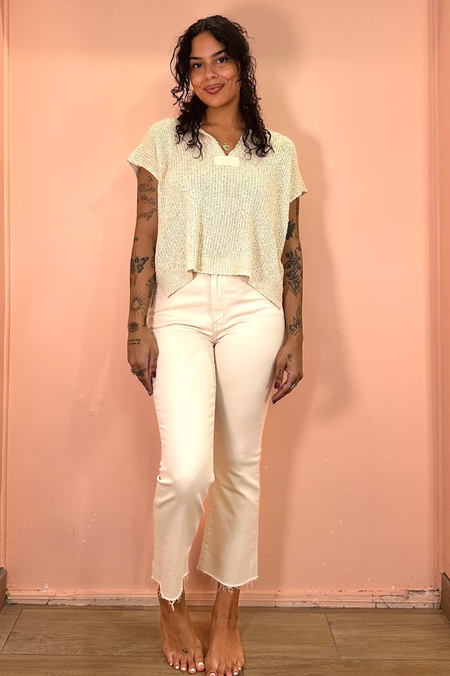 Best seller a loose fit, slouchy cropped sweater featuring V-neckline, cap sleeve, and solid front and back patch.