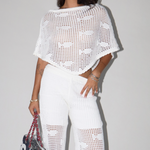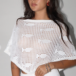 White Open Knit Short Poncho Top