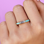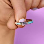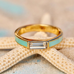 Step into your South Beach style with the Miami Beach Two-Toned Ring. The smooth, polished finish features two beachy blue enamel shades that meet at a bezel-set clear glass stone.