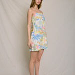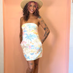 Summer Somewhere Strapless Pull on Mini Dress - Pastel Coastline Print