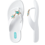 Celebrate your love for the ocean with Lizzie’s mixed metal and turquoise sea turtle charms. Boldly beachy and irresistibly cute, this flip flop is a must-have for sea lovers.