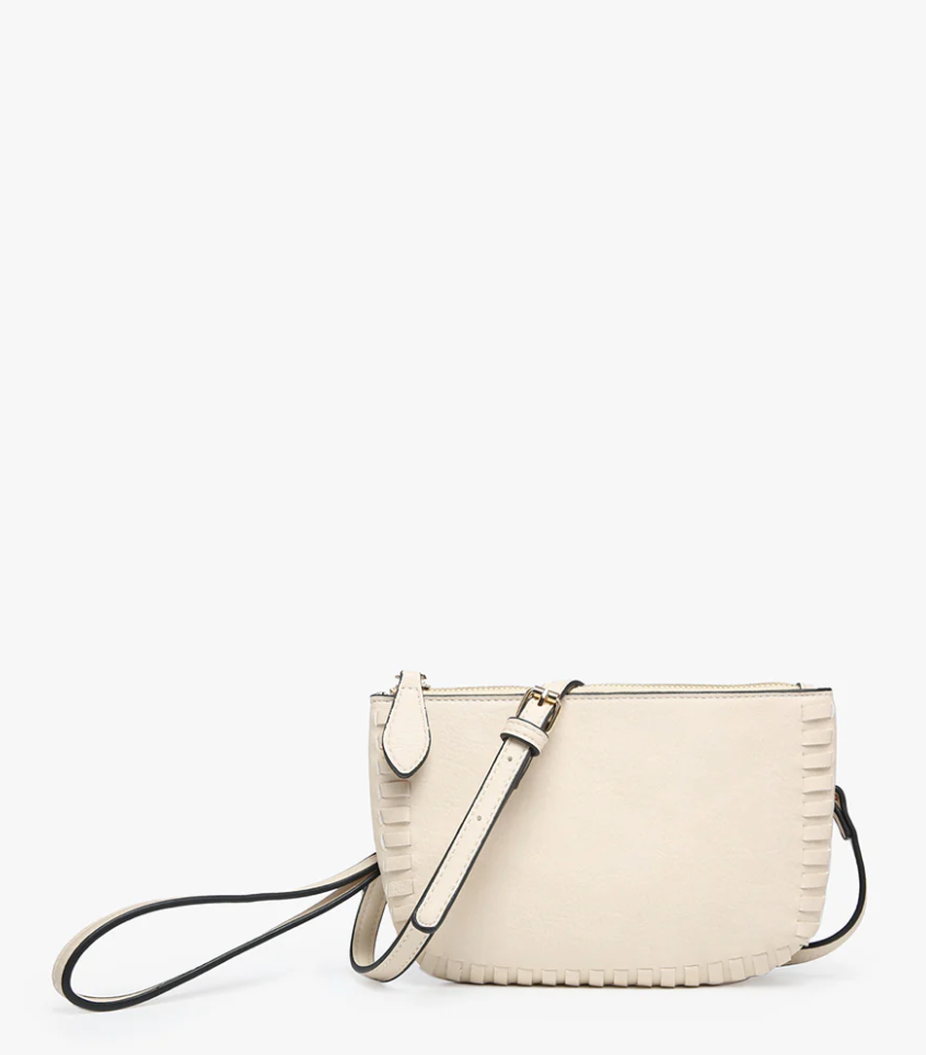 Bonnie Whipstitch Convertible Cross Body Purse, Wristlet or Clutch - Bone