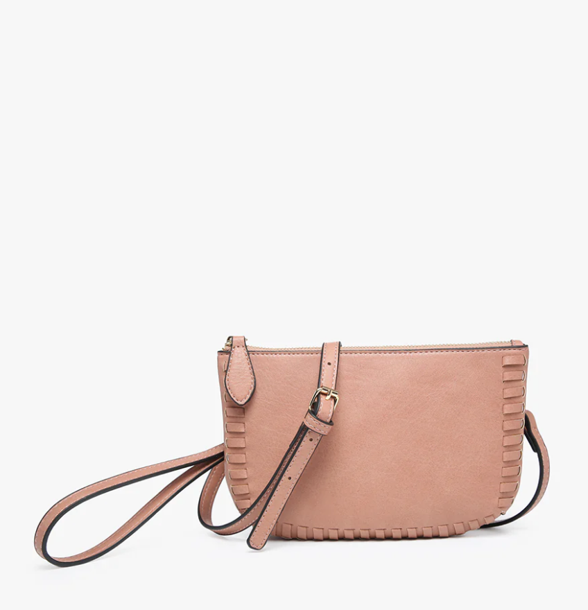 Bonnie Whipstitch Convertible Cross Body Purse, Wristlet or Clutch - Rosewood