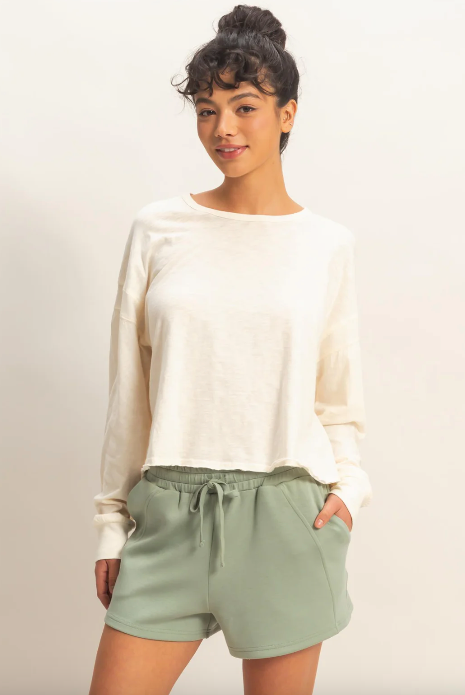 Split Neck Short Sleeve Raglan Tee- Cream By Bobi