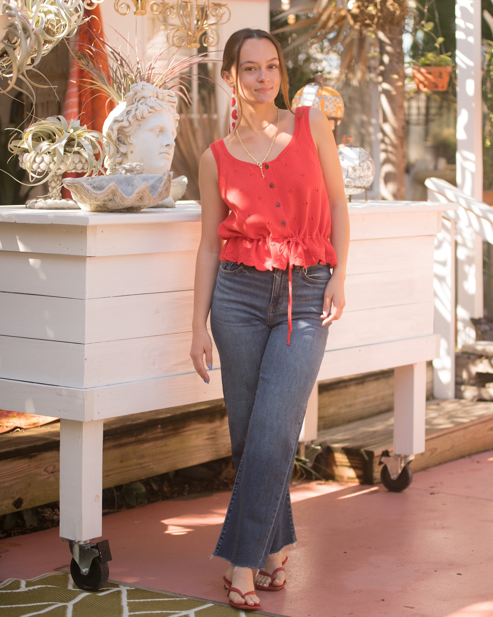 Scalloped Hem Sweater Tank With Tie Waist by Wishlist - Papaya Red
