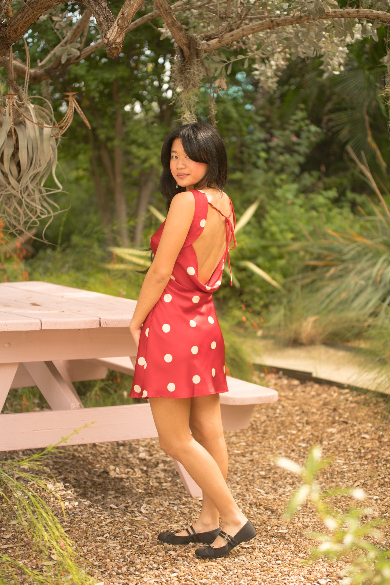 Linen Tiered Mini Dress With Scallop Trim - Rasberry Red