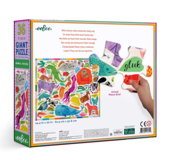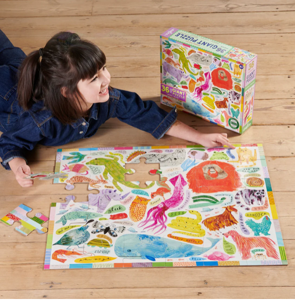 - 36 sturdy, dustless, double-coated puzzle pieces that snap together with ease
