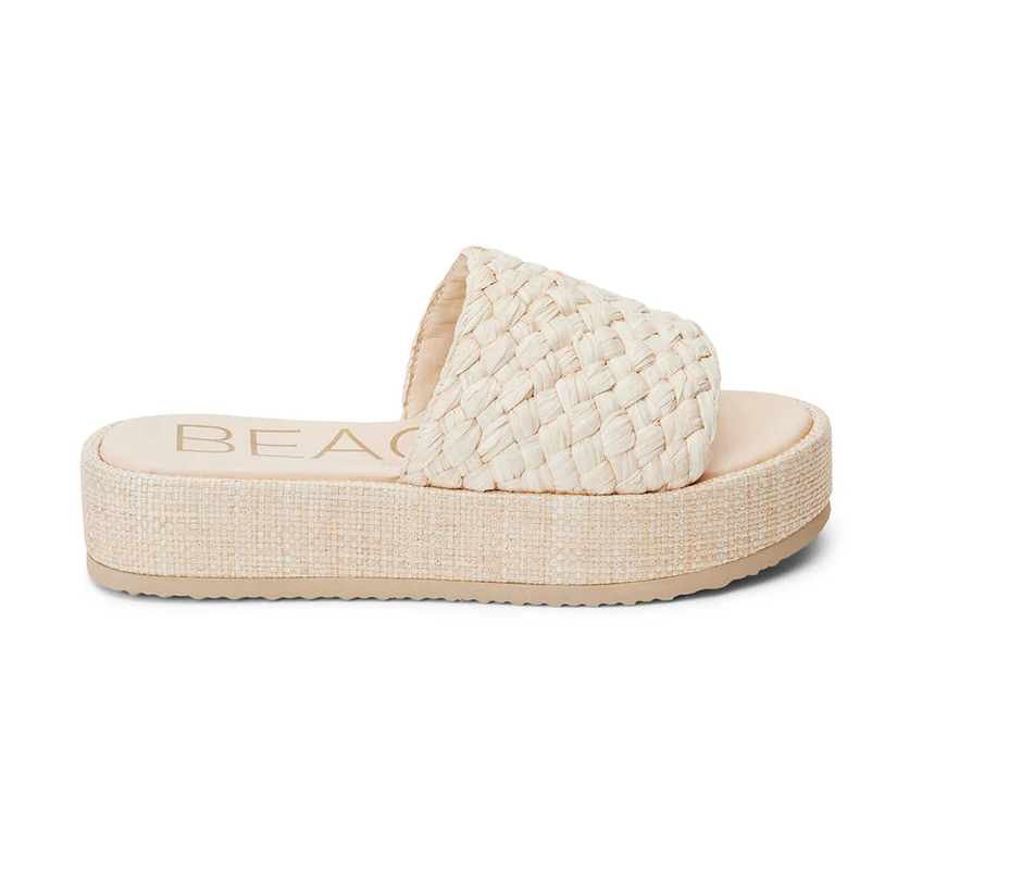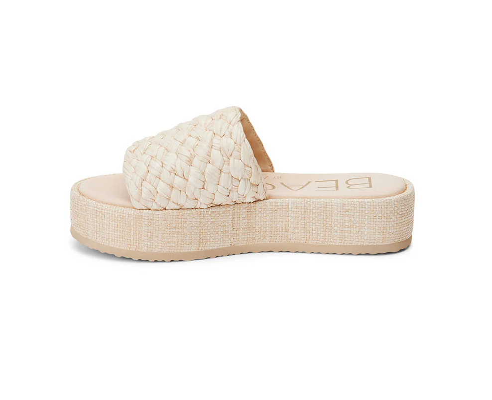 Braided Straw Flatform Slide Sandals - Cairo - Beige