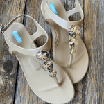 Keep it simple and elegant with Callie’s T-strap design and gold sand dollar charms. Perfect for adding a touch of beachy sophistication to any outfit.