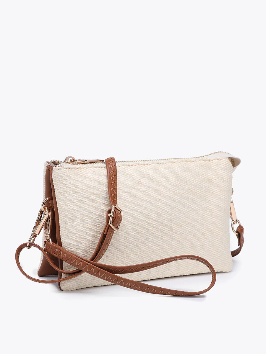 Riley Convertible Cross Body Purse, Wristlet or Clutch - Micro Straw White