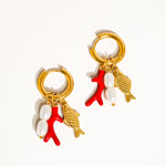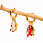 Rocaille 18K Gold Non-Tarnish Fish Pearl Earring: Red