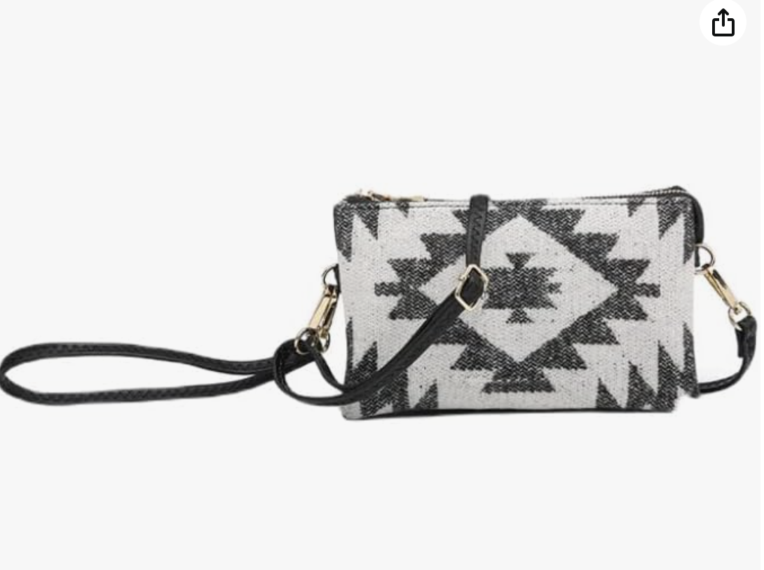 Riley Convertible Cross Body Purse, Wristlet or Clutch - Aztec Black