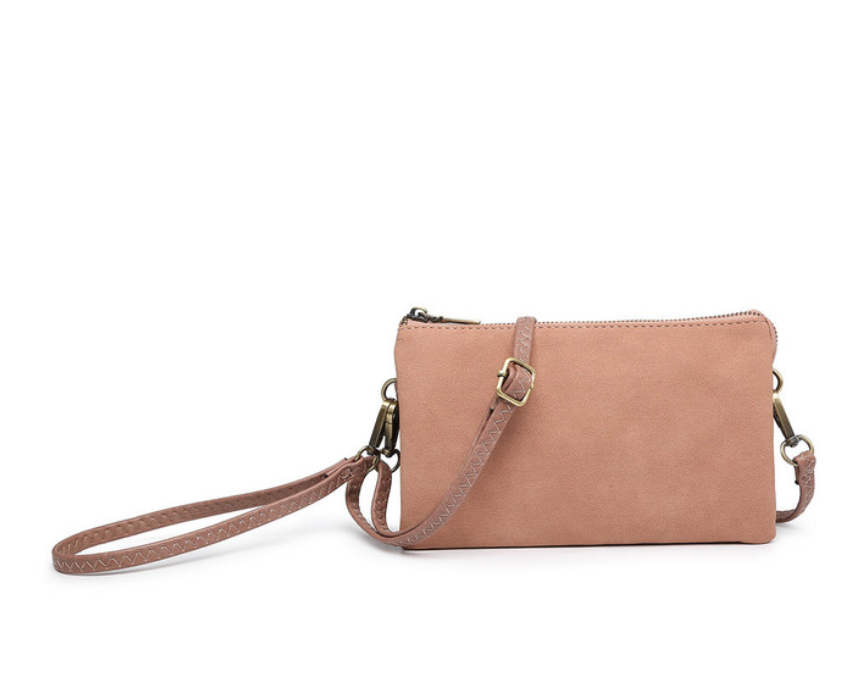 Riley Convertible Cross Body Purse, Wristlet or Clutch - Mauve Suede