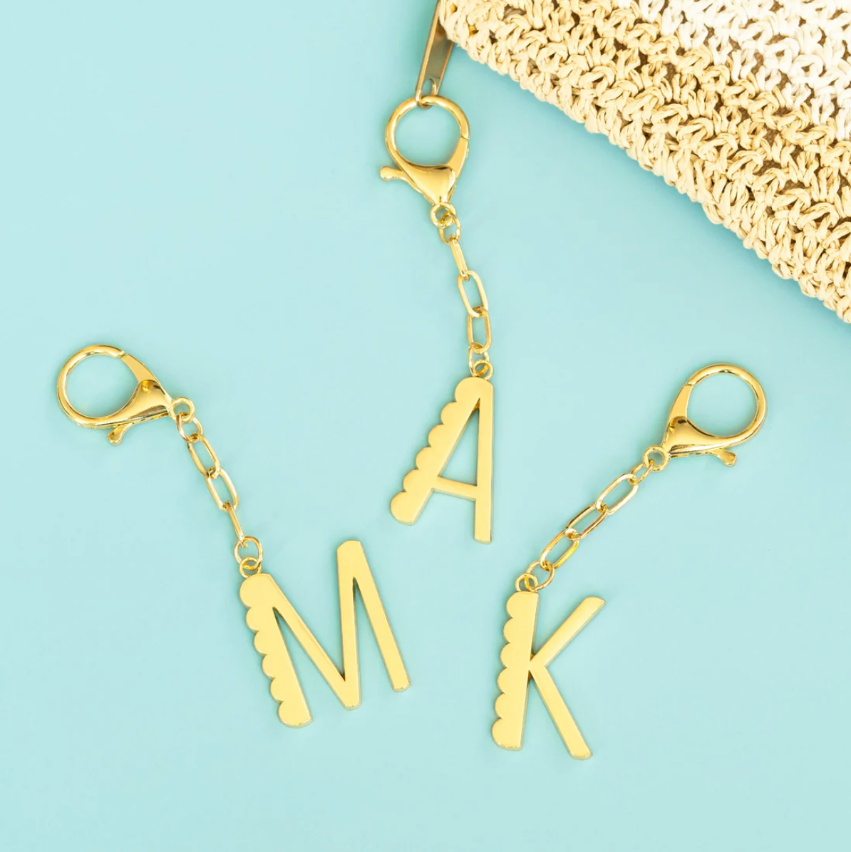 Upgrade your bag game today with these stunning gold letter bag charms by Lucky Feather, and let your personality shine through your accessories!