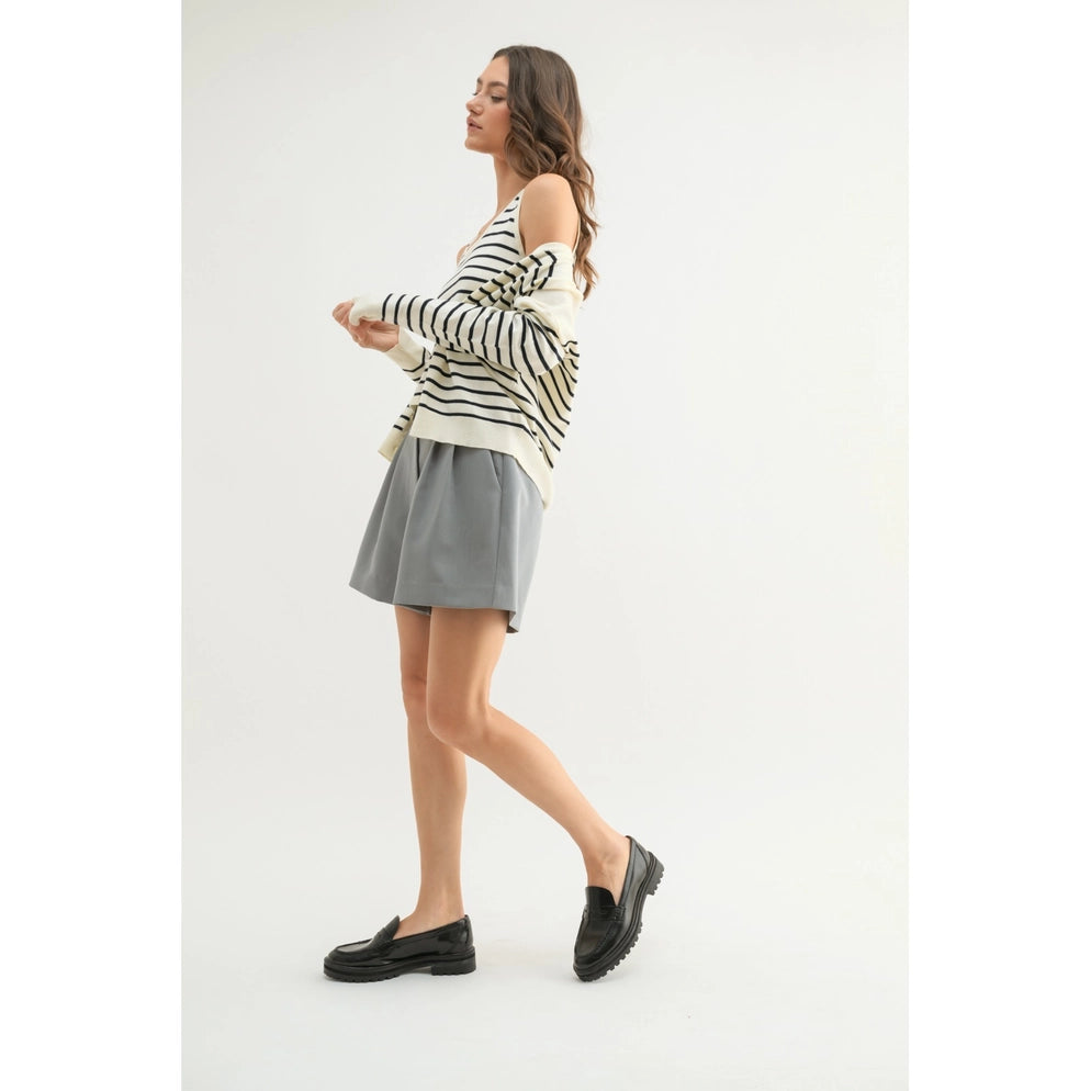 Striped Tank & Cardigan Sweater Set by Wishlist - Cream / Navy