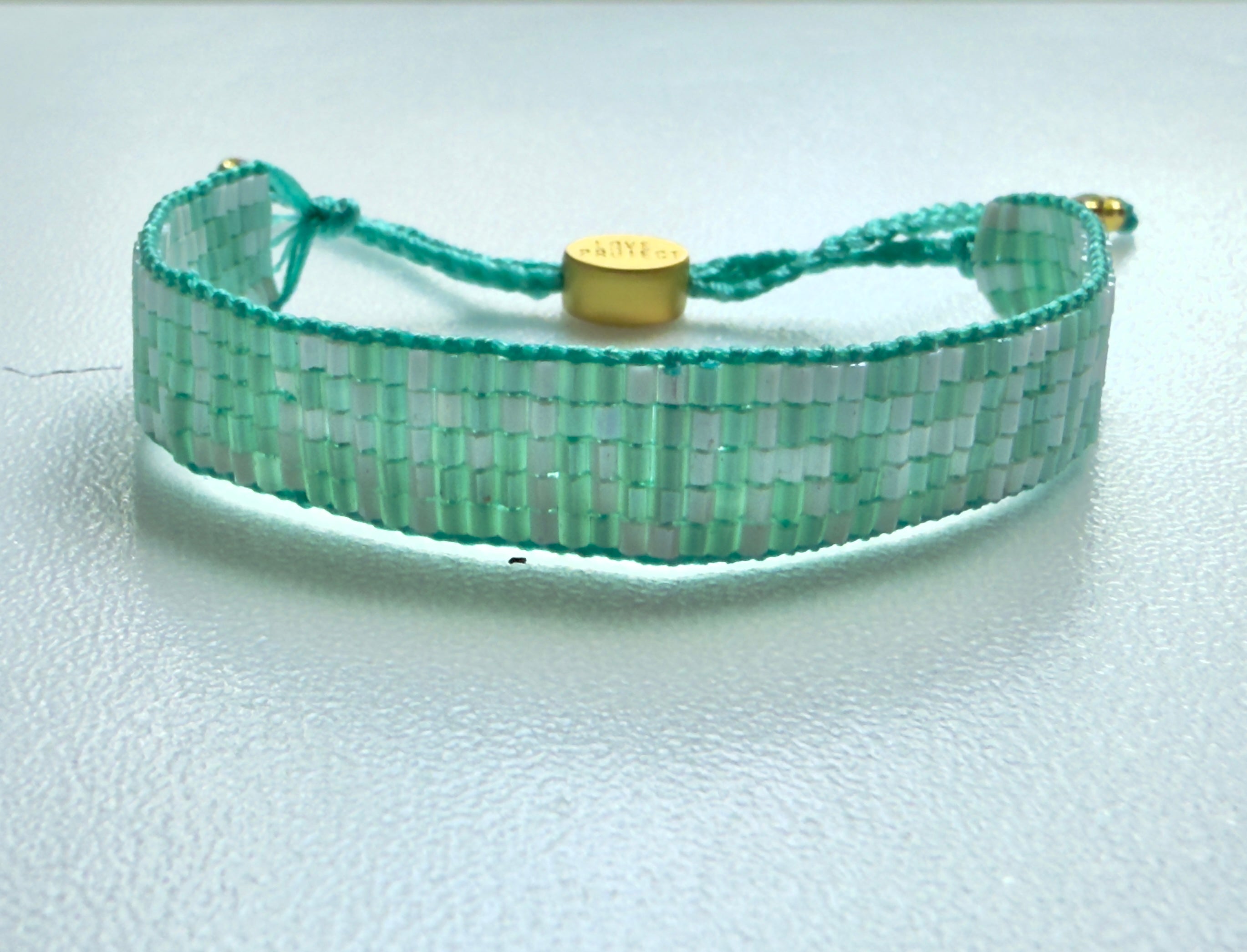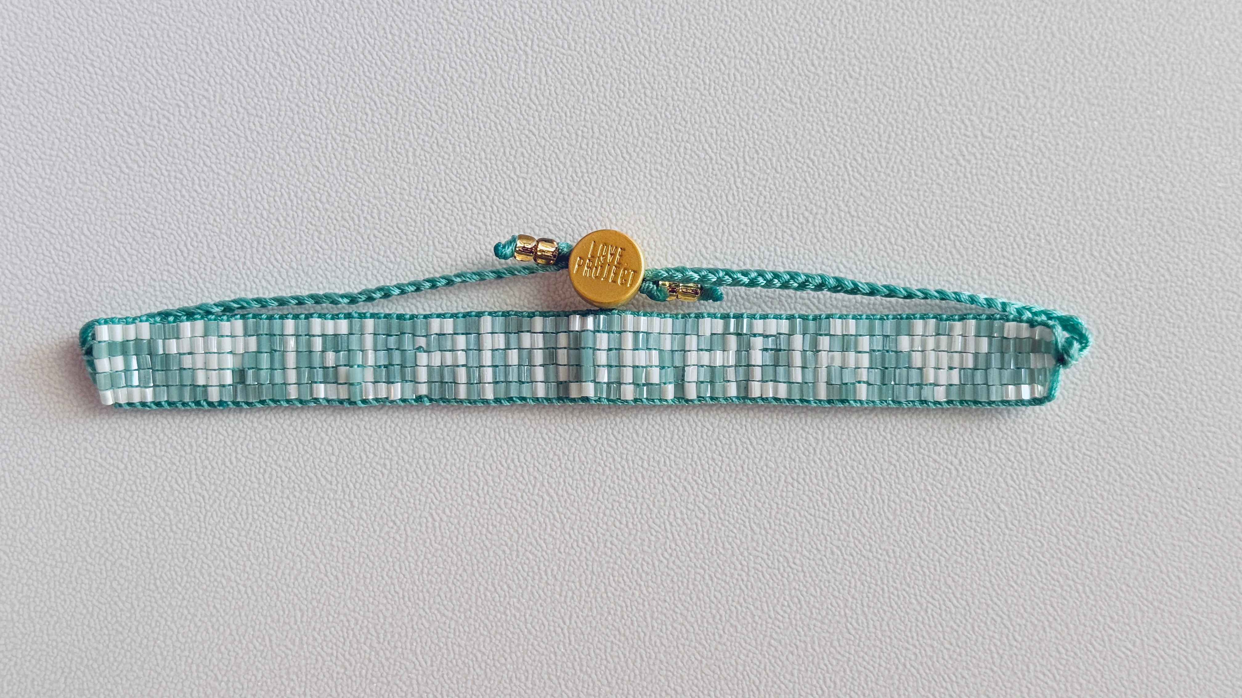 Seed Bead Islamorada Bracelet - Mint With White Lettering - Love Is Project