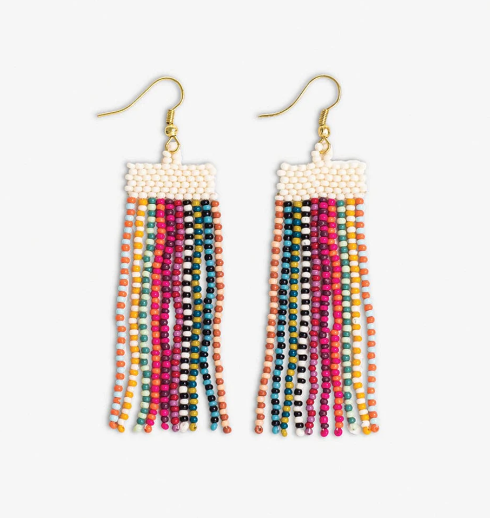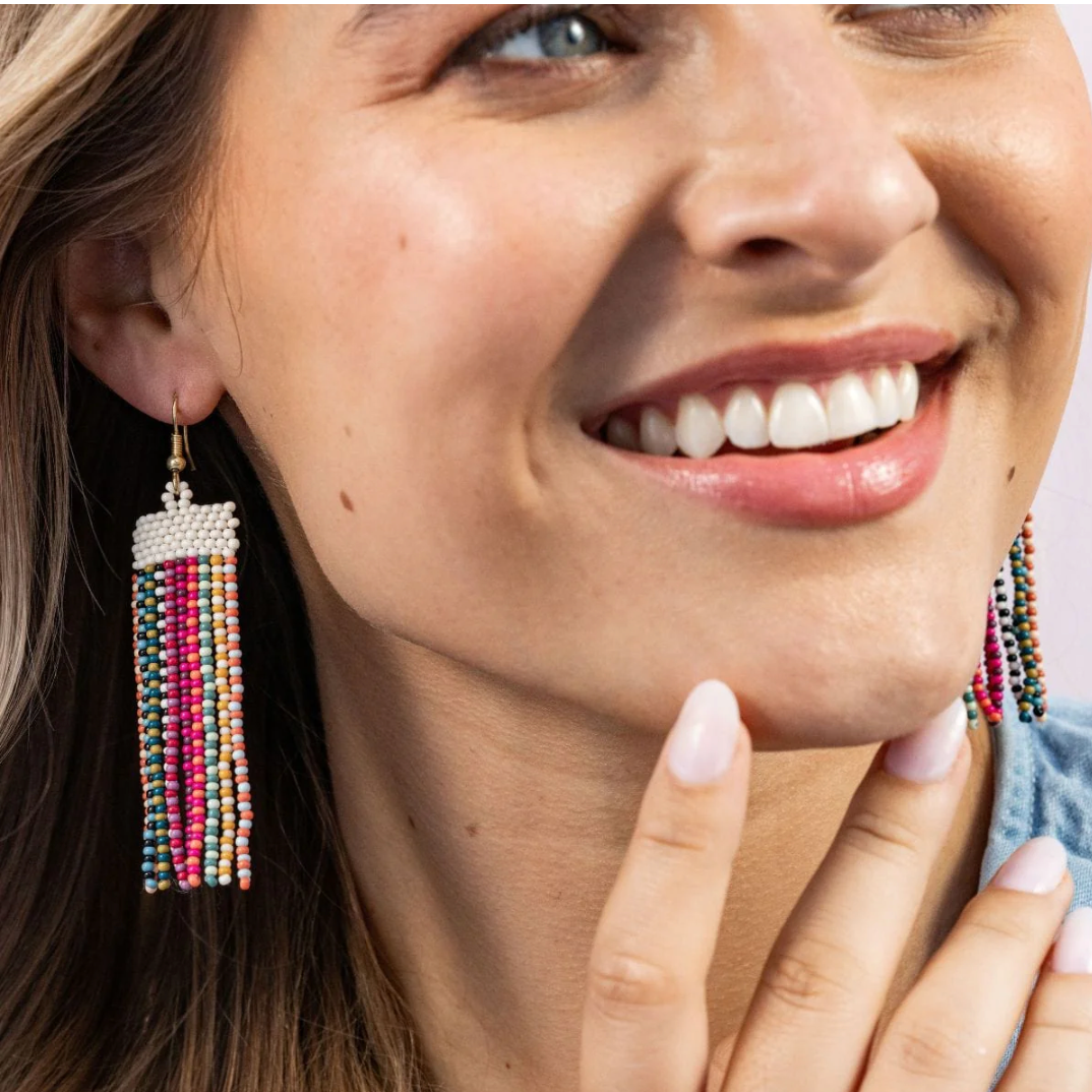 Introducing the Adaline Alternating Two-Tone Strands Beaded Fringe Earrings in a dazzling Multicolor extravaganza! Brace yourself for a burst of playful elegance as these earrings redefine the art of statement accessories.