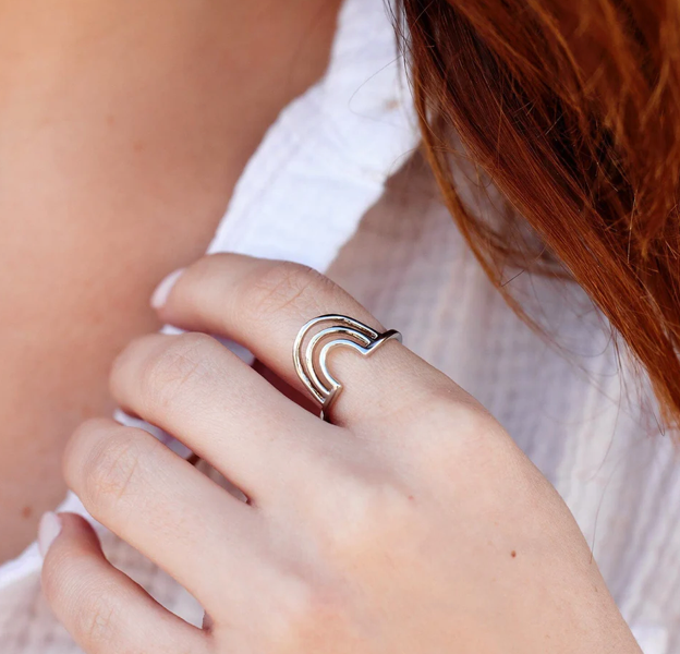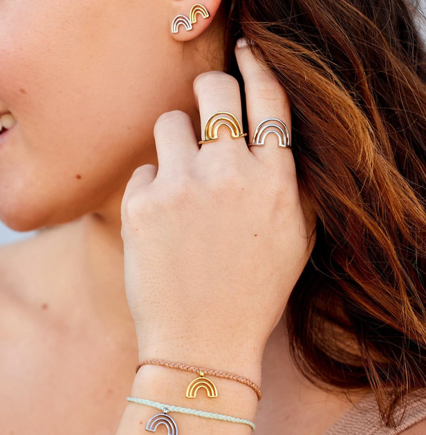 Add some magic to your everyday with our Chasing Rainbows Ring. Available in a silver or gold finish, this wraparound design features a cutout rainbow charm for a touch of whimsy and tons of good vibes.