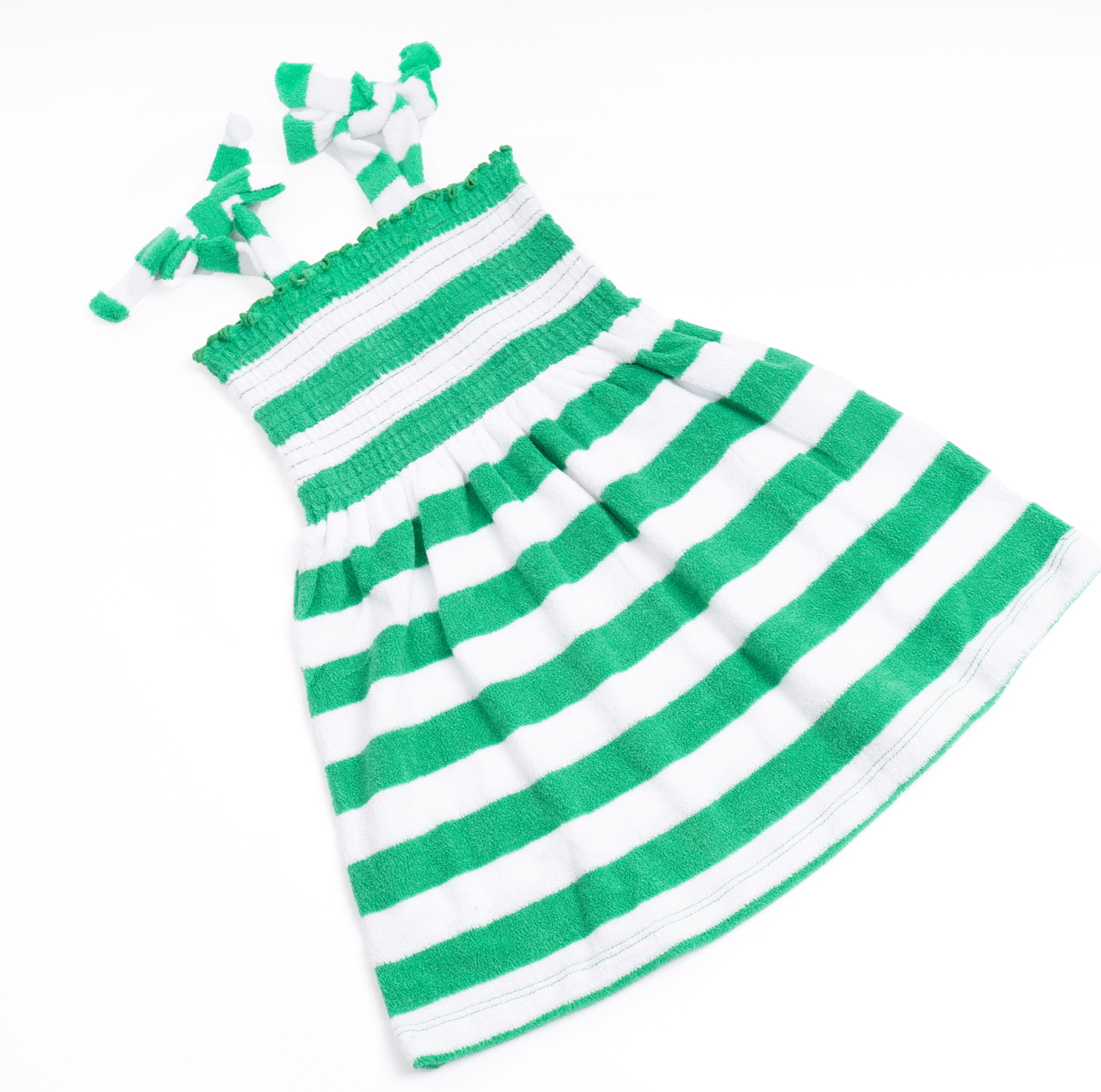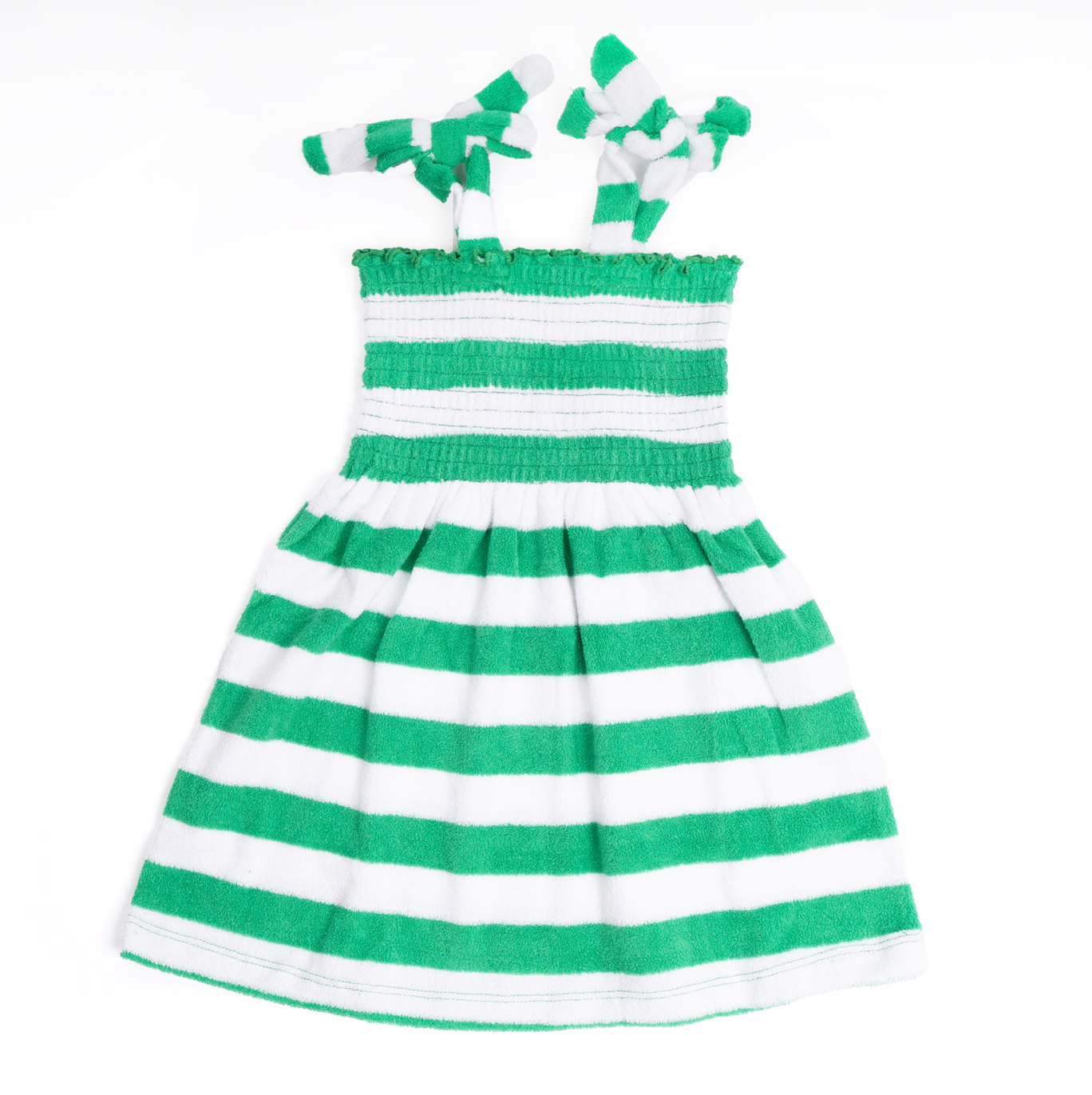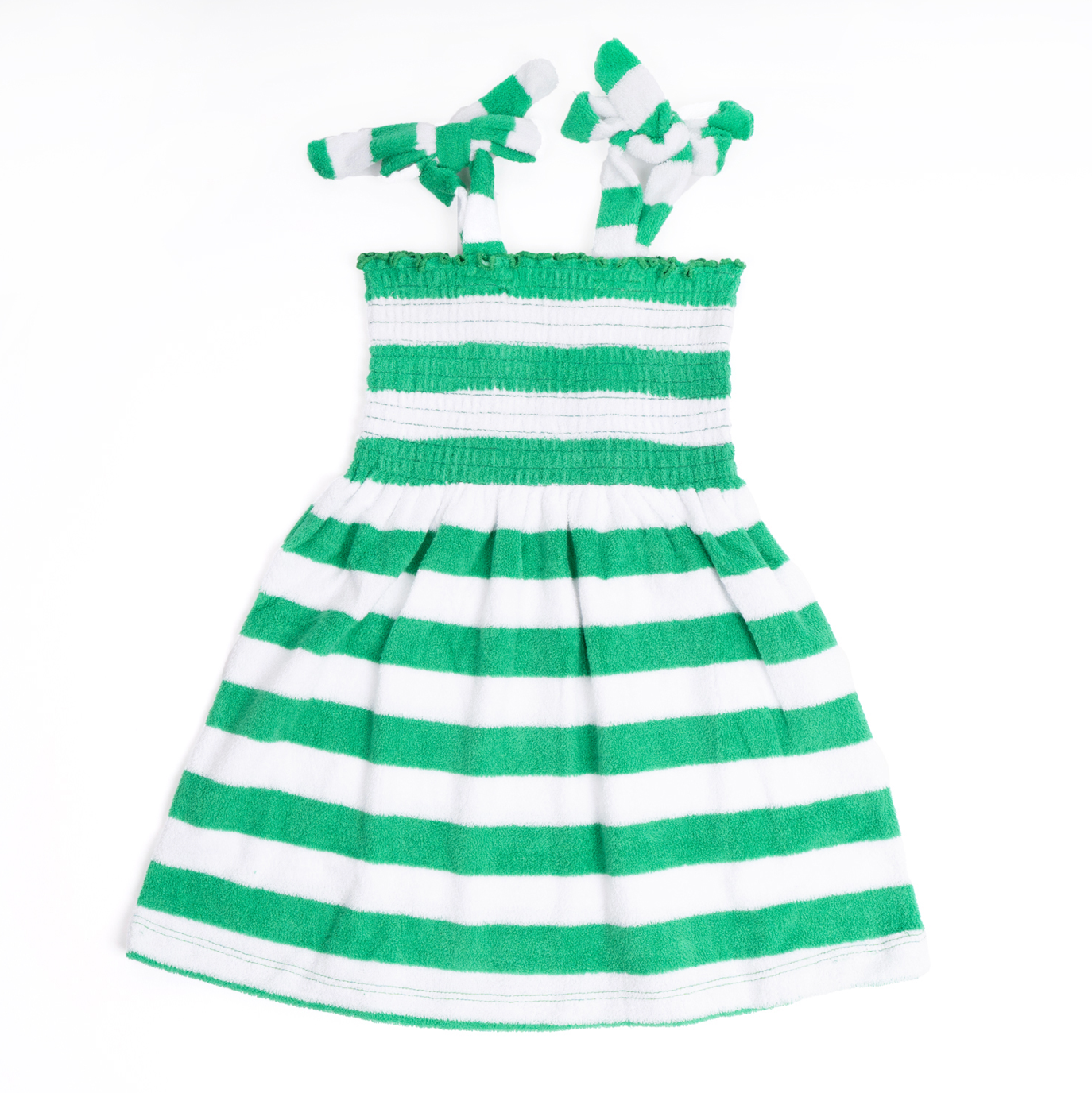 Girls Terry Cloth Dress With Tie Straps - Green Stripe