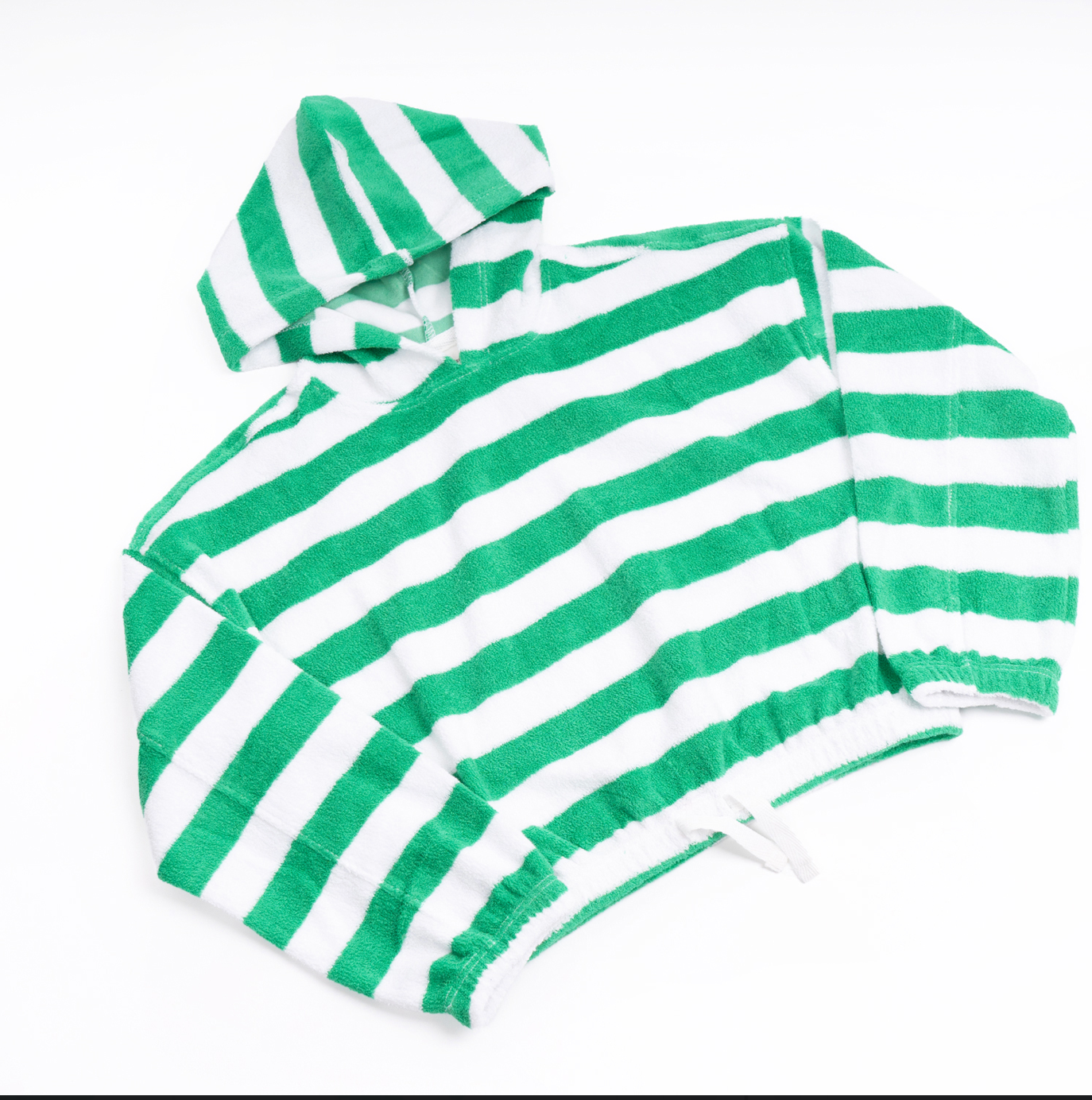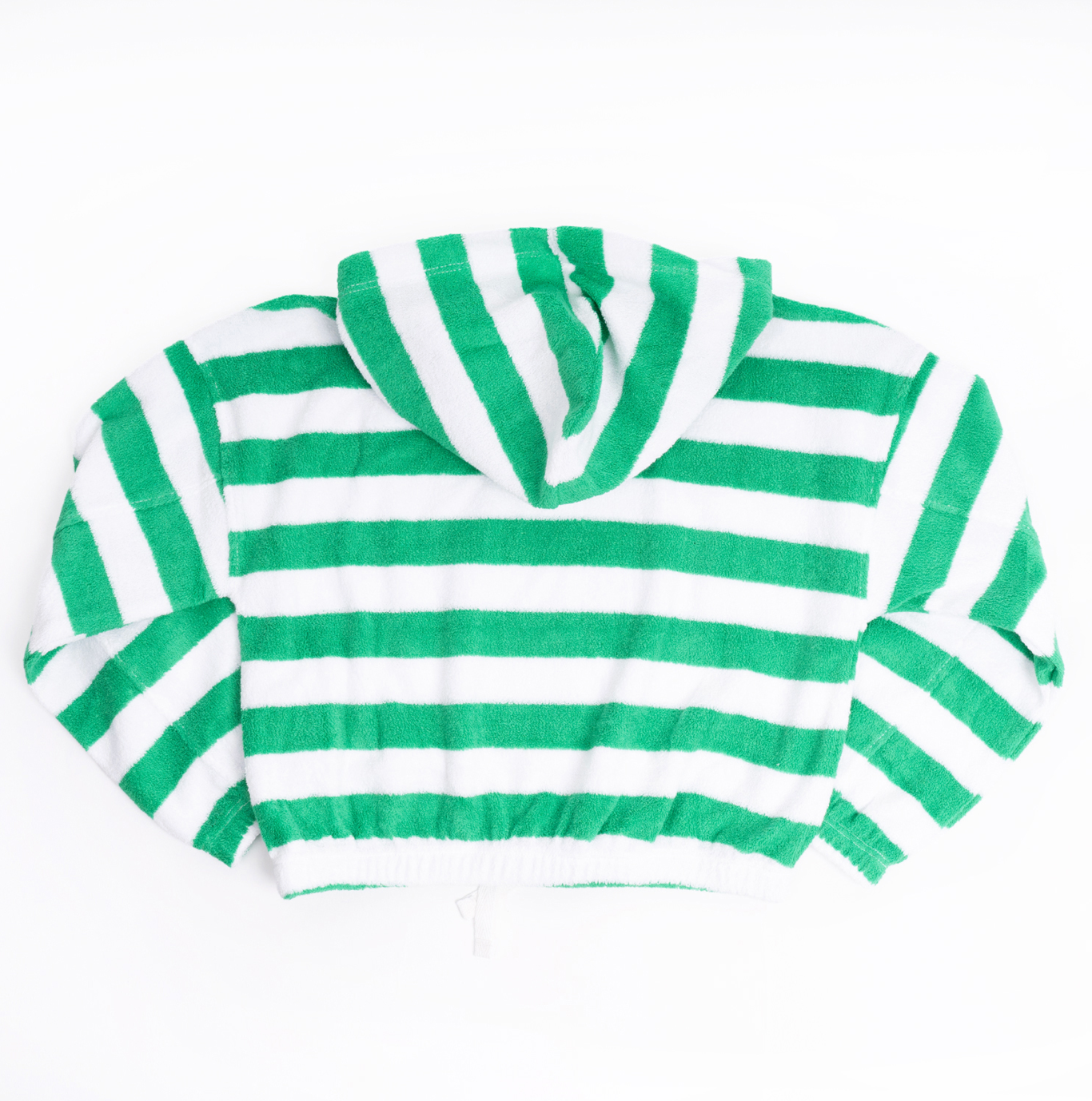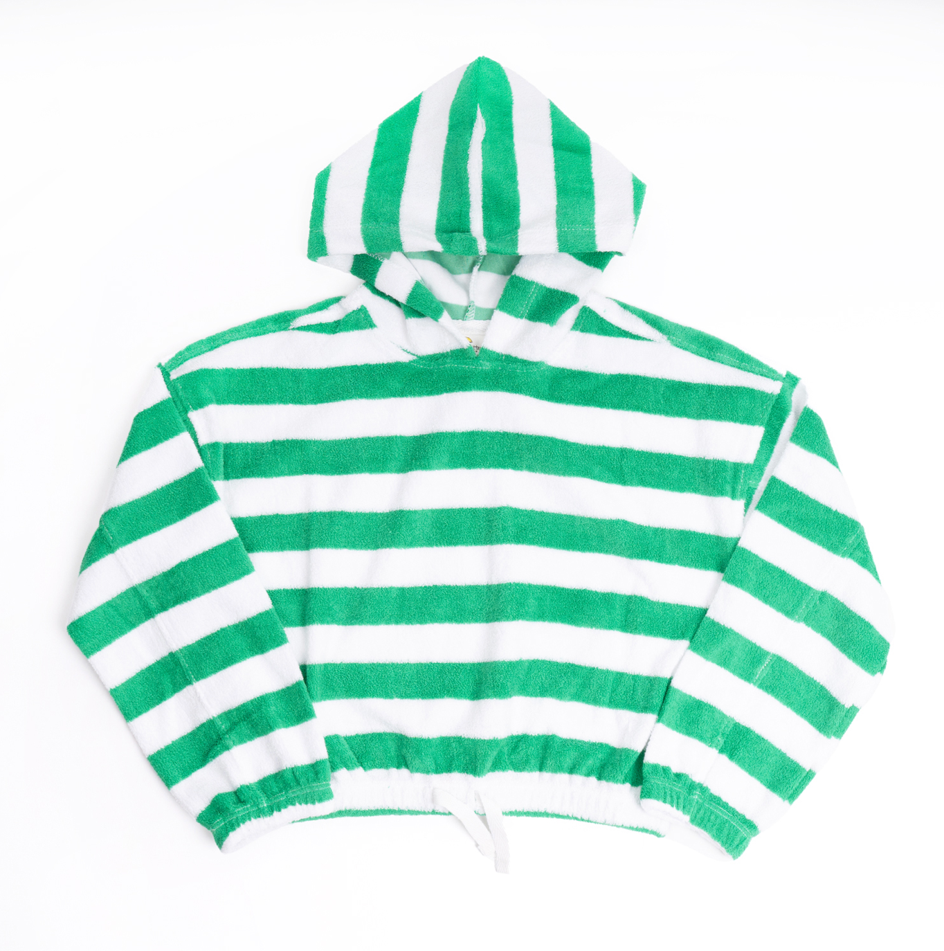 Girls Terry Cloth Hoodie Sweater - Green Stripe