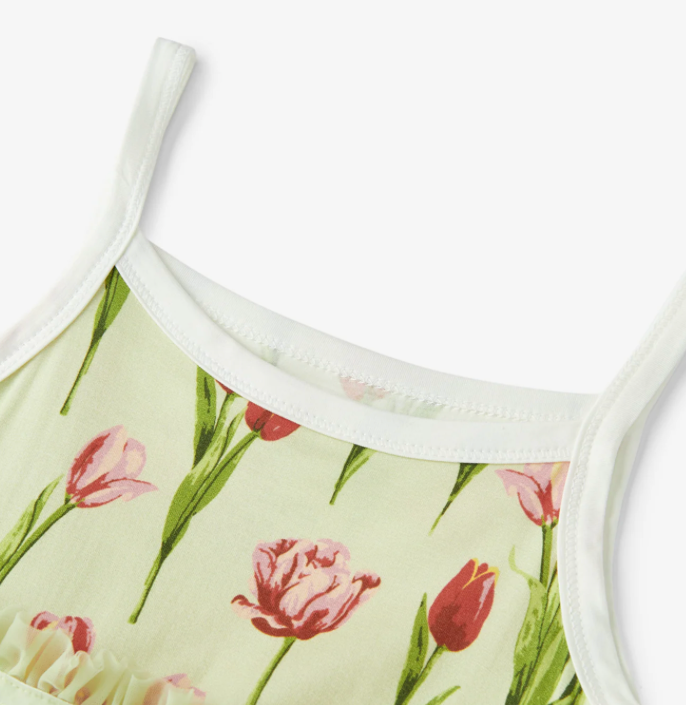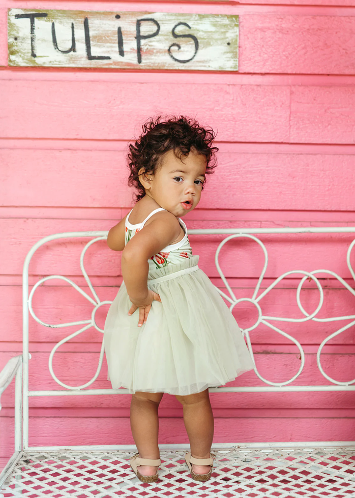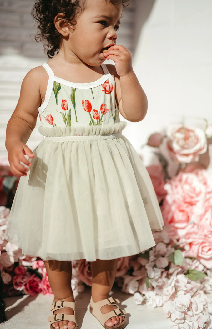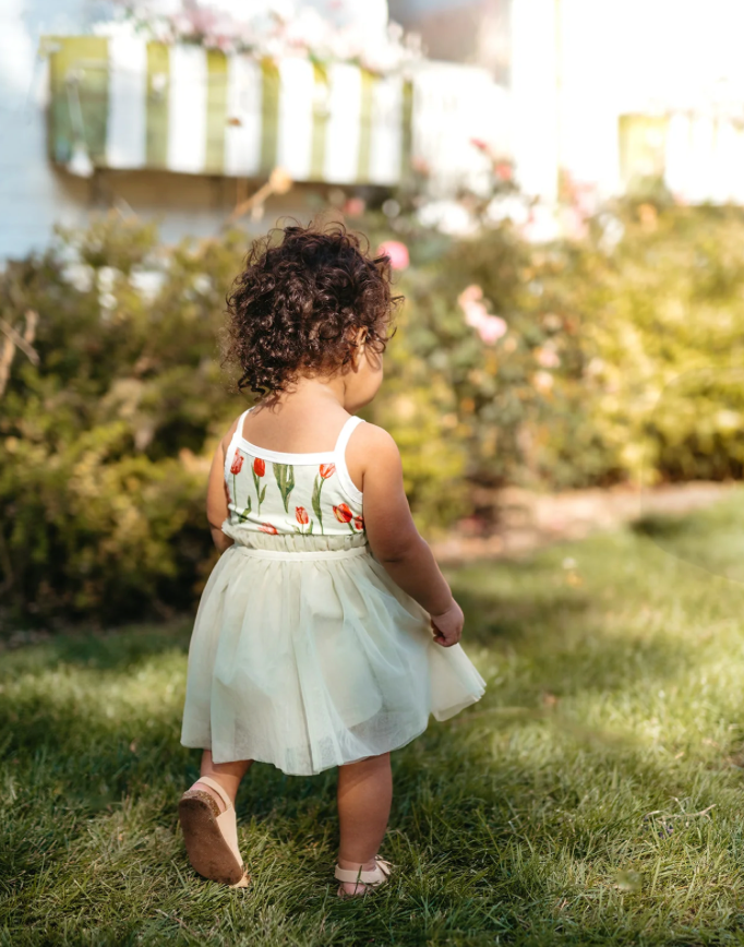 Let your little one twirl with delight in our Luxe Stretch Ballet Dress in the Tulip print. This adorable dress features a stretchy bodice and a flowy skirt for ease of movement. Made from 95% bamboo and 5% spandex, it's perfect for playdates or special occasions.