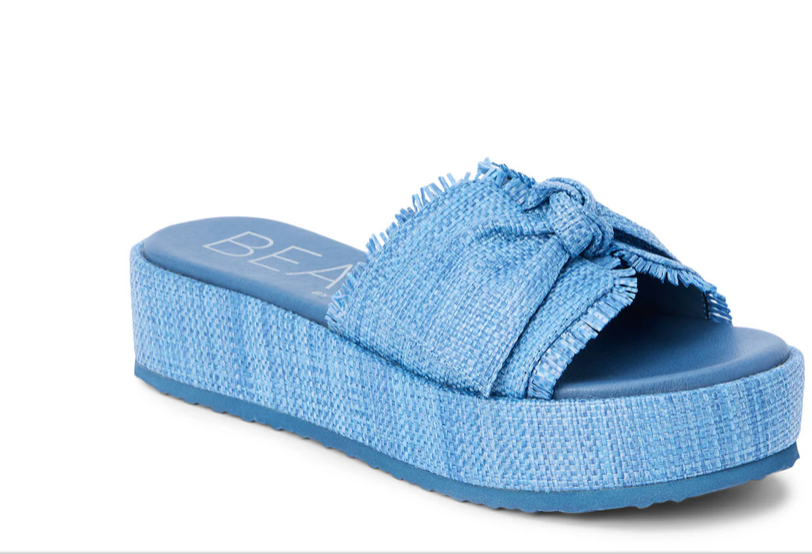 Straw Slide Flatform Sandals - Sunda - Marine Blue