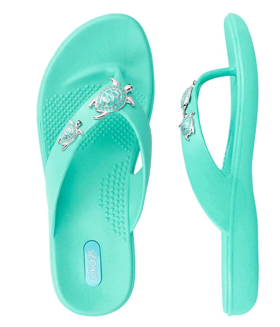 Add some turtle love to your toes with Theresa's beautiful sea turtle charms. Easy to clean and comfortable, this flip flop will bring a little vacation to your feet.
