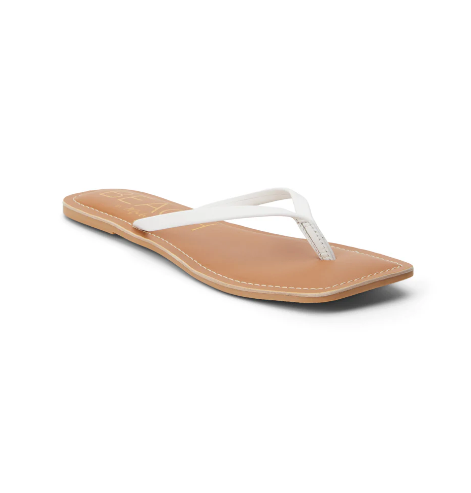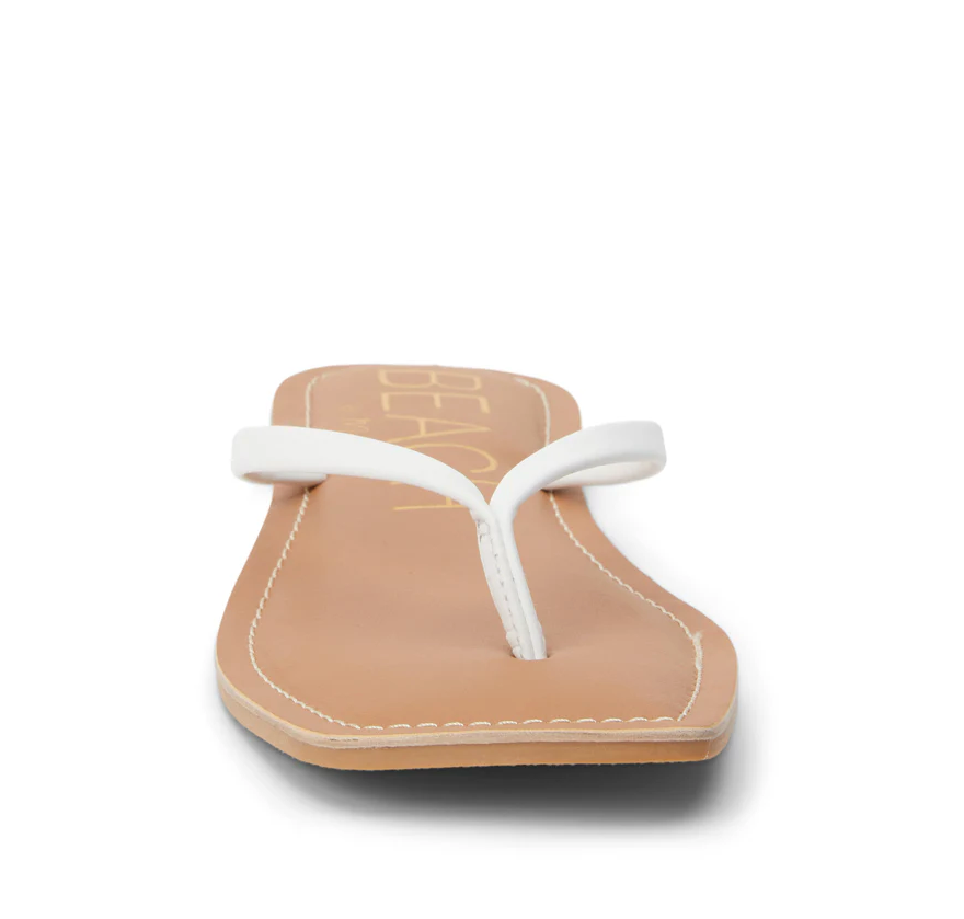 Minimalist leather thong sandal with squared toe.